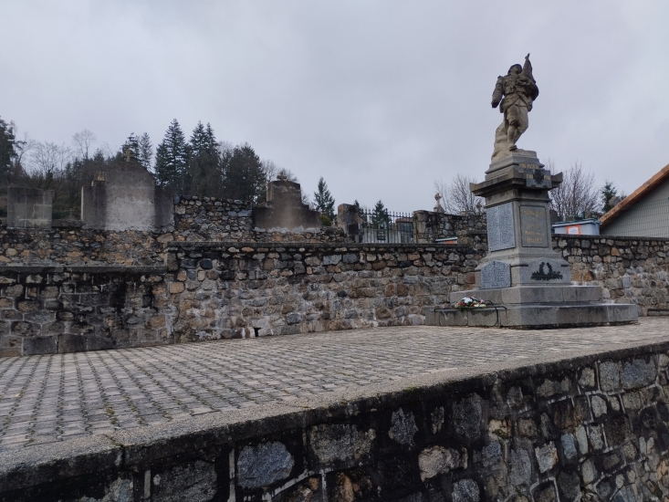 Sur la liste des anciens maires à l'époque où le monument aux morts a dut être érigé on trouve Fernand Bonnet de 1918 à 1919 et Auguste Poncet de 1919 à 1935. Sur une ancienne carte postale (dont on ne connait pas la date mais qui doit dater du début du siècle dernier) on voit le monument aux morts sur la place de St-martin entre l'église et la fontaine ! De là à en déduire que Fernand Bonnet, maire socialiste, aurait fait ériger le monument sur la place et que Auguste Poncet maire de droite, l'ait fait transporter au cimetière ?