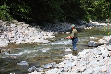 Point capital, donc : Se tenir hors de la vue du poisson. Les vraies positions du pêcheur de truite sont les positions basses : Accroupi, à genoux, à quatre pattes ou à plat ventre."